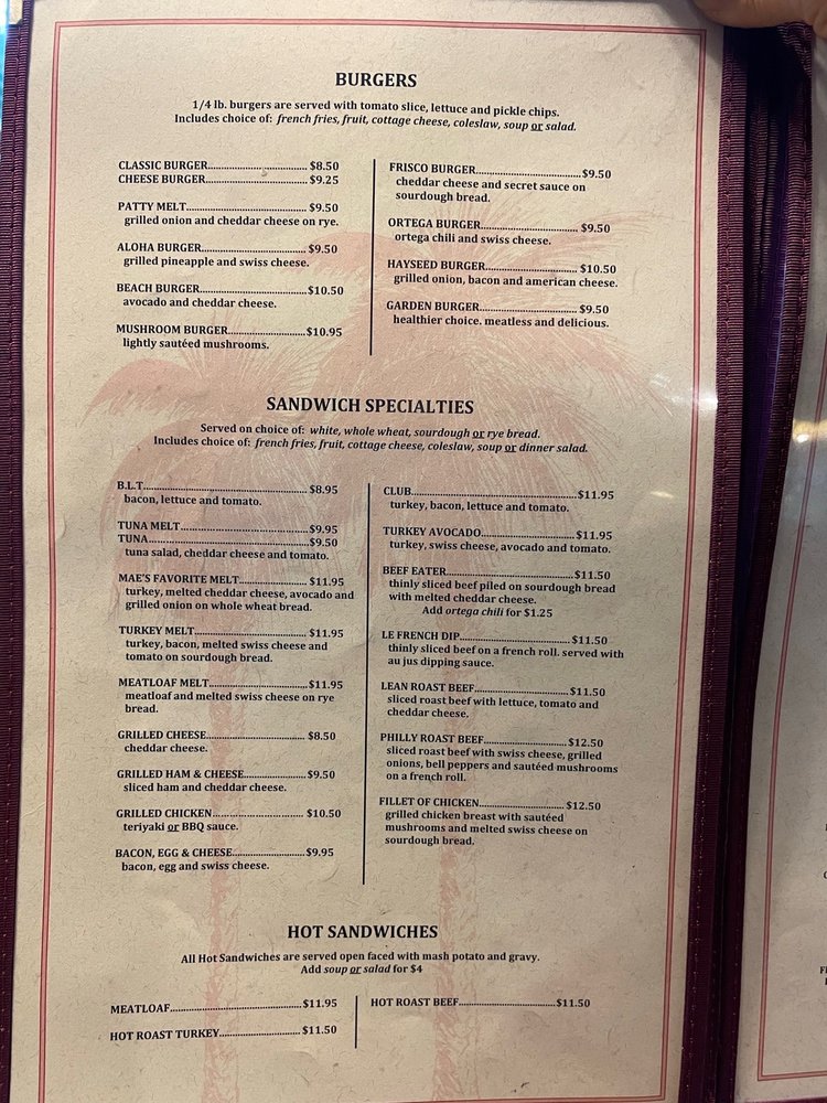 Mae's Cafe Menu (2025 Update)